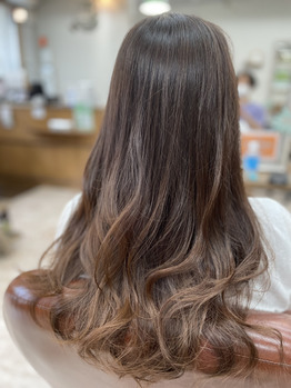 カーキグレージュのくすみが、髪質を柔らかく透明感のある質感を演出できます。