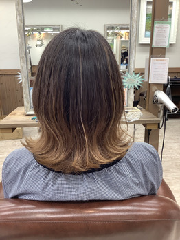 ブリーチ剤を使用したグラデーションカラーにハイライトを入れています。