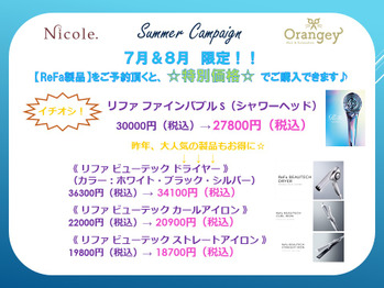 平素より Nicole保土ヶ谷 Orangey保土ヶ谷 をご愛顧いただき誠にありがとうございます。今回は、お得な“夏のキャンペーン”のご紹介です♪